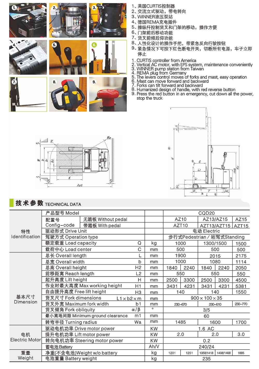 站駕前移式叉車具有無污染、噪音小、能量轉(zhuǎn)換效率高、操作簡單方便等優(yōu)點(diǎn)。能在有限的作業(yè)空間里面進(jìn)行高位堆垛作業(yè),這是平衡重式叉車和堆垛車沒法比較的,同噸位的平衡重式叉車需要的空間更大,而堆垛車作業(yè)的高度相對比較低,因此要在有限的作業(yè)空間內(nèi)完成高貨架堆垛,前移式叉車是非常好的選擇,而站駕前移式就是前移式叉車的一種。
