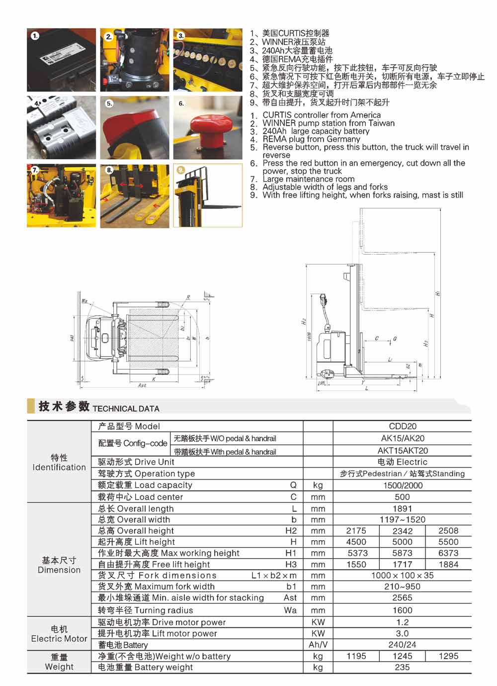 CDDAK全電動(dòng)堆垛車(自由提升,寬支腿)